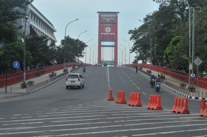 Titik 2 penutupan total pada sisi hulu jembatan ampera. Lalu lintas diarahkan melalui jembatan musi IV (via plaju) dan musi VI (via Kertapati).