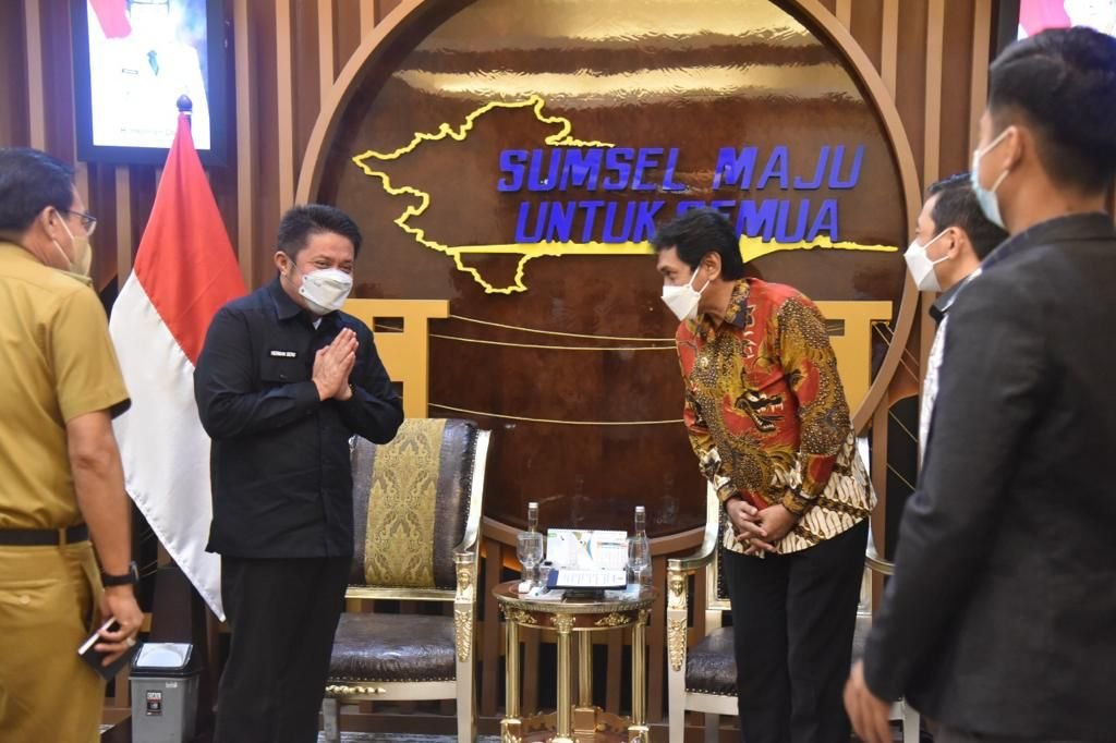 PALEMBANG – Di sela agendanya yang cukup padat, Gubernur Sumsel H. Herman Deru menerima audiensi Komisioner Ombudsman RI Dr Johannes Widijantoro beserta rombongan di ruang tamunya, Selasa (12/10) siang.