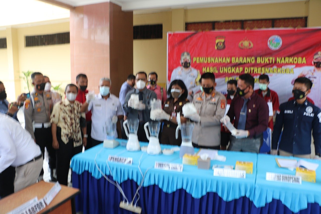 “Barang bukti ini kita dapatkan dari empat pelaku dengan tiga laporan polisi dan kita musnahkan dengan cara diblender,” ujarnya disela-sela press release di halaman Ditresnarkoba Polda Sumsel.