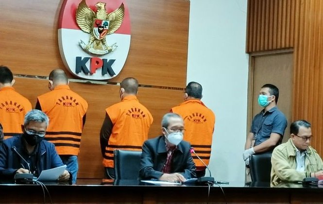 “KPK melakukan penyelidikan dan ditemukan adanya bukti permulaan yang cukup, sehingga KPK meningkatkan status perkara ini ke tahap penyidikan dengan mengumumkan empat orang tersangka. Dan keempatnya ditahan untuk 20 hari kedepan,” kata Wakil Ketua KPK, Alexander Marwata saat menggelar konpers di Gedung Merah Putih KPK, Jakarta Selatan, Sabtu (16/10).