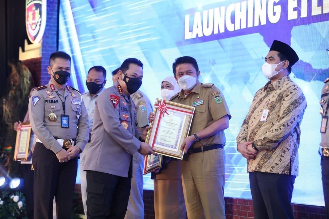 HALOPOS.ID|SURABAYA – Gubernur Sumatera Selatan (Sumsel) H Herman Deru mendapat penghargaan ETLE Nasional Presisi dari Kepolisian Republik Indonesia (Polri), atas kontribusinya dalam membantu pengadaan infrastuktur Electronic Traffic Law Enforcement (ETLE) di wilayah Sumatera Selatan melalui dukungan hibah anggaran.