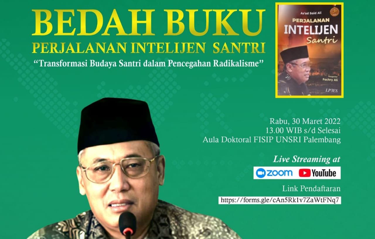 Kegiatan yang akan diadakan di ruang Doktoral FISIP Unsri bukit itu juga akan menghadirkan langsung penulis, yakni Dr KH Asad Said Ali, mantan waka BIN era Presiden Gusdur, Megawati dan SBY.