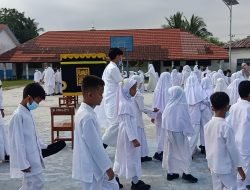 HALOPOS.ID|PALI – Ratusan siswa siswi SD Yayasan Perguruan Islam Pendopo (YPIP) Peris memutihkan halaman sekolahnya, Selasa, 29 Maret 2022.
