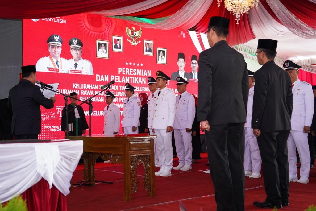 Bahwa pembentukan kelurahan dalam wilayah Kabupaten Banyuasin telah terbentuk 8 kelurahan baru hasil pemekaran dalam kecamatan Talang Kelapa dan Kecamatan Betung, dengan diresmikannya kelurahan pada hari ini maka jumlah kelurahan dalam Kabupaten Banyuasin yang semula 17 Kelurahan menjadi 25 kelurahan.
