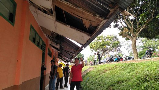 Ditemani salah satu tokoh masyarakat setempat Sukabangun (58), H Kristian dengan teliti memperhatikan satu demi satu ruangan gedung sekolah yang mengalami rusak berat tersebut.