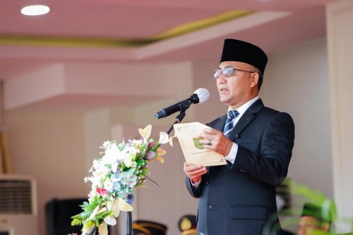 Upacara yang dipimpin oleh Pj Bupati Muba H Apriyadi Mahmud selaku Pembina Upacara tersebut mengambil tema “Gotong Royong Membangun Peradaban dan Pertumbuhan Global”. Turut hadir Dandim 0401 Muba Letkol Arm Dede Sudrajat SH MH, Wakapolres Muba, Sekretaris Daerah Kabupaten Muba Musni Wijaya SSos MSi, Para Asisten dan Para Staf Ahli Bupati, Ketua TP PKK Kabupaten Muba Hj Asna Aini Apriyadi, serta seluruh Aparatur Sipil Negara (ASN) dan Tenaga Kerja Kontrak (TKK) di lingkungan Pemkab.