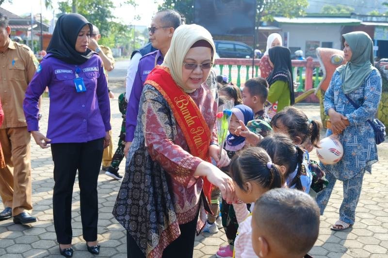 HALOPOS.ID|SEKAYU – Bunda Pendidikan Anak Usia Dini (PAUD) Kabupaten Musi Banyuasin (Muba) Hj Asna Aini Apriyadi melakukan kunjungan monitoring dan evaluasi kegiatan Masa Pengenalan Lingkungan Sekolah ( MPLS) Transisi PAUD ke Sekolah Dasar (SD) di Kabupaten Muba, Senin (17/7/2023).