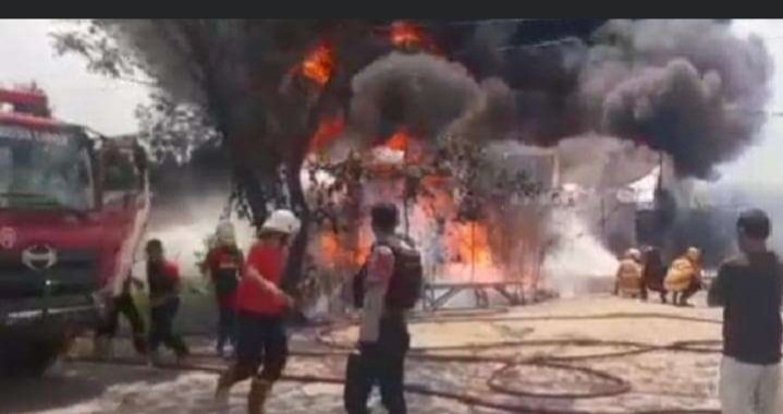 Dari konfirmasi di tkp kabag Ops merinci kejadian terindikasi kebakaran disebabkan mesin penyedot minyak mengalami korsleting listrik sehingga menimbulkan kebakaran dan mengakibatkan seluruh barang yang ada di gudang hangus terbakar dan memakan satu korban berinisial AF salah karyawan gudang yang sekarang di rawat di RS, tutupnya.