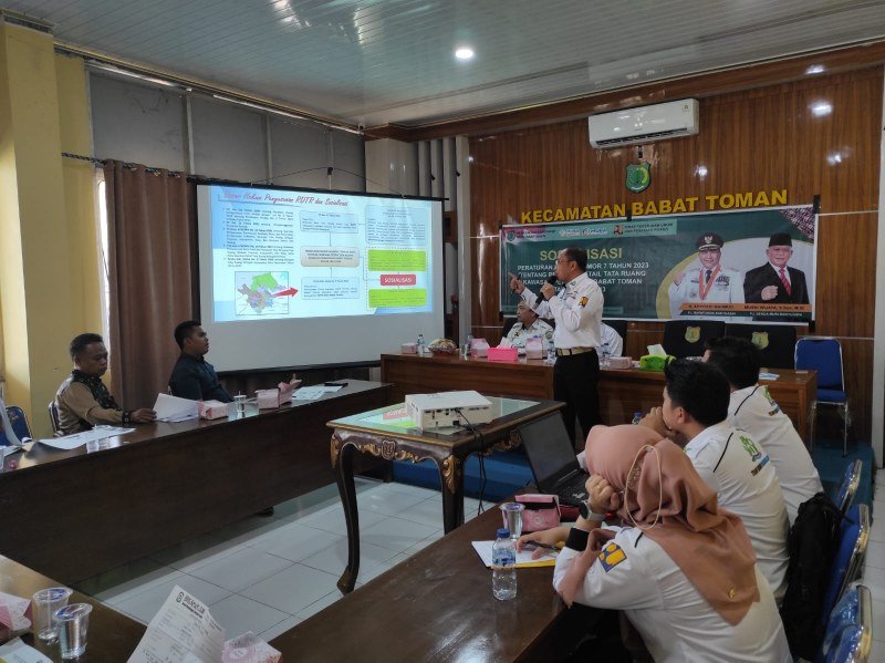 HALOPOS.ID|MUBA – Pemkab Musi Banyuasin melalui Dinas Pekerjaan Umum dan Penataan Ruang (PUPR) Kabupaten Musi Banyuasin melaksanakan Sosialisasi Peraturan Bupati (Perbup) No. 7 Tahun 2023 tentang Rencana Detail Tata Ruang (RDTR) Kawasan Perkotaan Babat Toman Tahun 2023-2043, yang bertempat di Kantor Camat Babat Toman, Rabu (6/9).