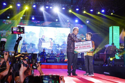 HALOPOS.ID|MUBA- Masih ingat dengan Muhammad Novan Alfaridzi, siswa kelas IV SD Negeri 2 Kayuara Kabupaten Muba yang berhasil meraih juara dalam ajang kompetisi International Mathematical Science Creativity Competition (IMSCC) 2023 di Korea beberapa waktu lalu ini, Jumat (27/10/2023) malam dalam kesempatan Pembukaan Muba Expo 2023 di Stable Sekayu mendapatkan hadiah langsung uang tunai sebesar Rp25 Juta dari Pj Bupati Apriyadi.