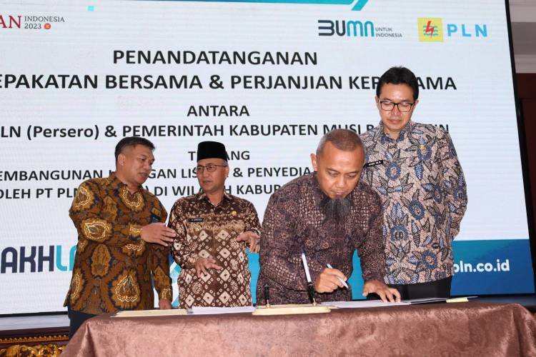 Bertempat di Auditrium Sriwijaya PLN UID S2JB, Kesepakatan Bersama dan Perjanjian Kerjasama Pembangunan Jaringan dan Penyediaan Tenaga Listrik untuk 14 Kecamatan di Wilayah Kabupaten Musi Banyuasin (Muba) ditandatangani oleh PLH General Manager PLN UID S2JB, Toni Wahyu Wibowo, dan Pj Bupati Muba, Drs. H. Apriyadi, M.Si.