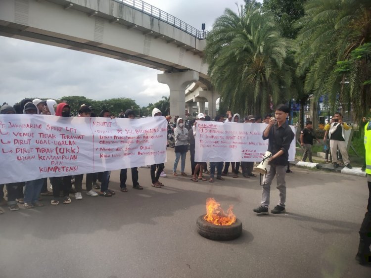 Para peserta aksi unjuk rasa ini menuntut Dirut untuk bertanggung jawab atas problematika dari pengelolaan eksternal maupun internal yang terjadi di PT Jakabaring Sport City (JSC) serta mundur dari jabatannya.