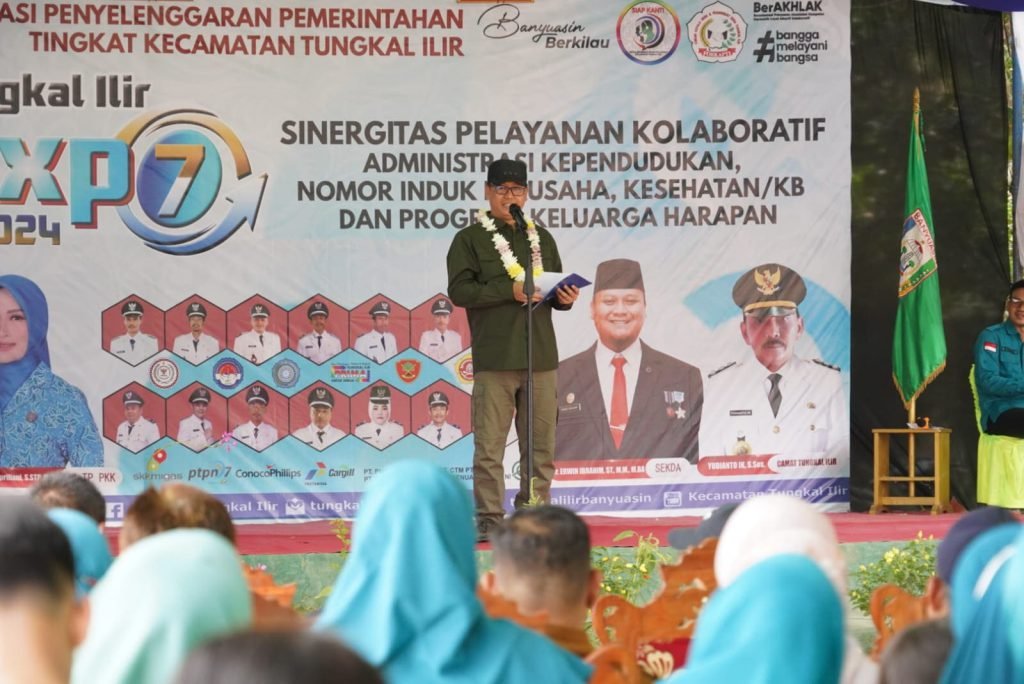 HALOPOS.ID|PANGKALAN BALAI — Penjabat Bupati Banyuasin Muhammad Farid membuka secara resmi Tungkal Ilir Expo 2024 Yang ke -7. Kegiatan yang dipusatkan di Lapangan Bola Karang Asem Kecamatan Tungkal Ilir, Selasa (27/08). Selain Tungkil Expo juga diadakan Pasar Khusus dan Pelayanan Kolaboratif guna menekan inflasi daerah.