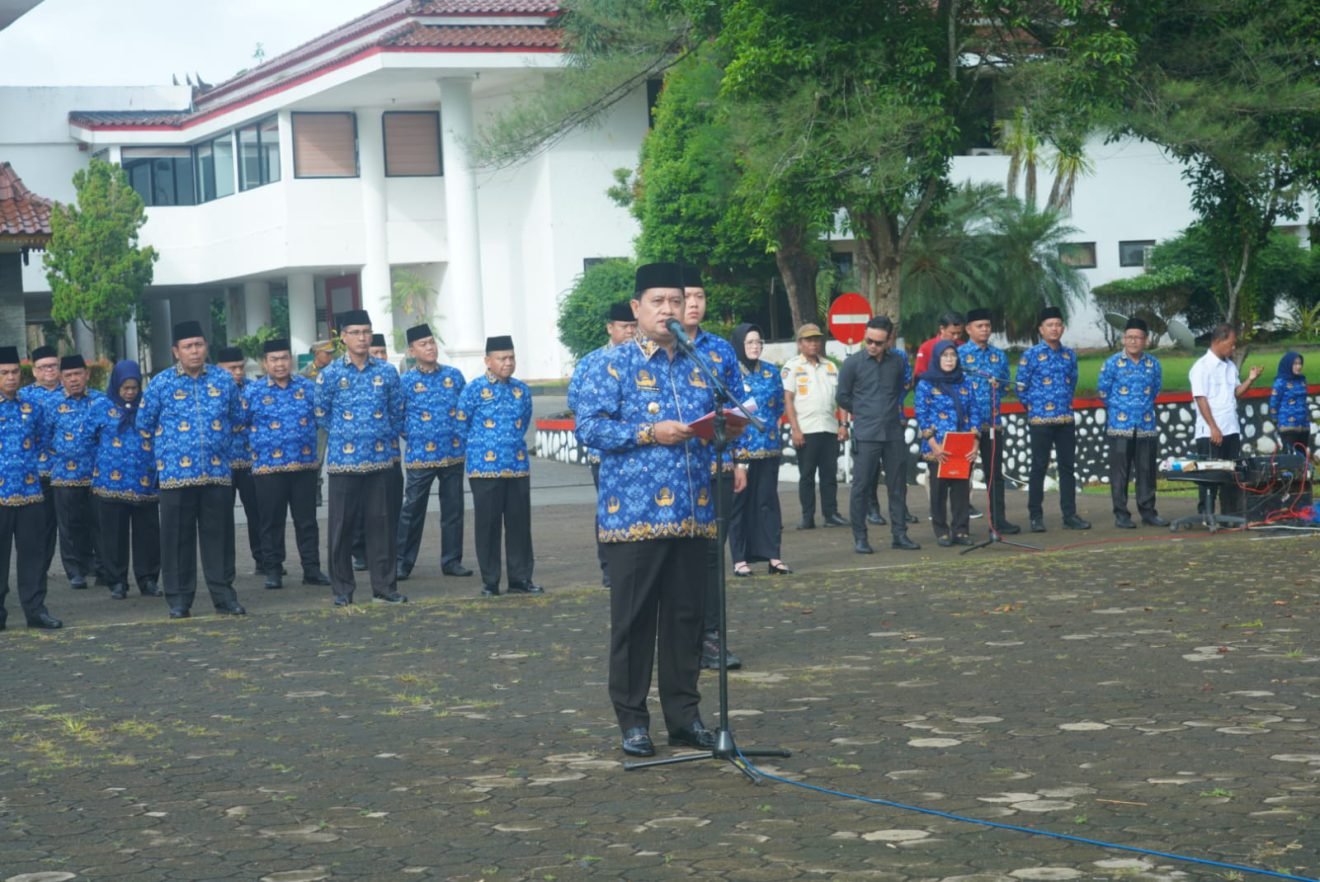 HALOPOS.ID|PANGKALAN BALAI — Bupati Banyuasin Dr. H. Askolani memimpin Apel Gabungan Bulan April 2025 di Halaman Upacara Pemkab Banyuasin, Kamis (17/04/2025).