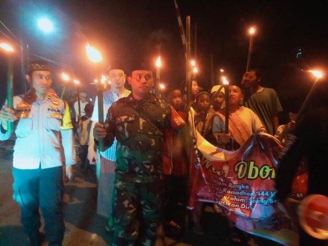 HALOPOS.ID|MUARA ENIM – Polres Muara Enim bersama Bhabinsa melaksanakan pengamanan dan monitoring kegiatan masyarakat berupa pawai obor dalam rangka menyambut Bulan Ramadhan 1444 H di seputaran jalan Raya Muara Enim, Selasa (21/03/2023), malam.