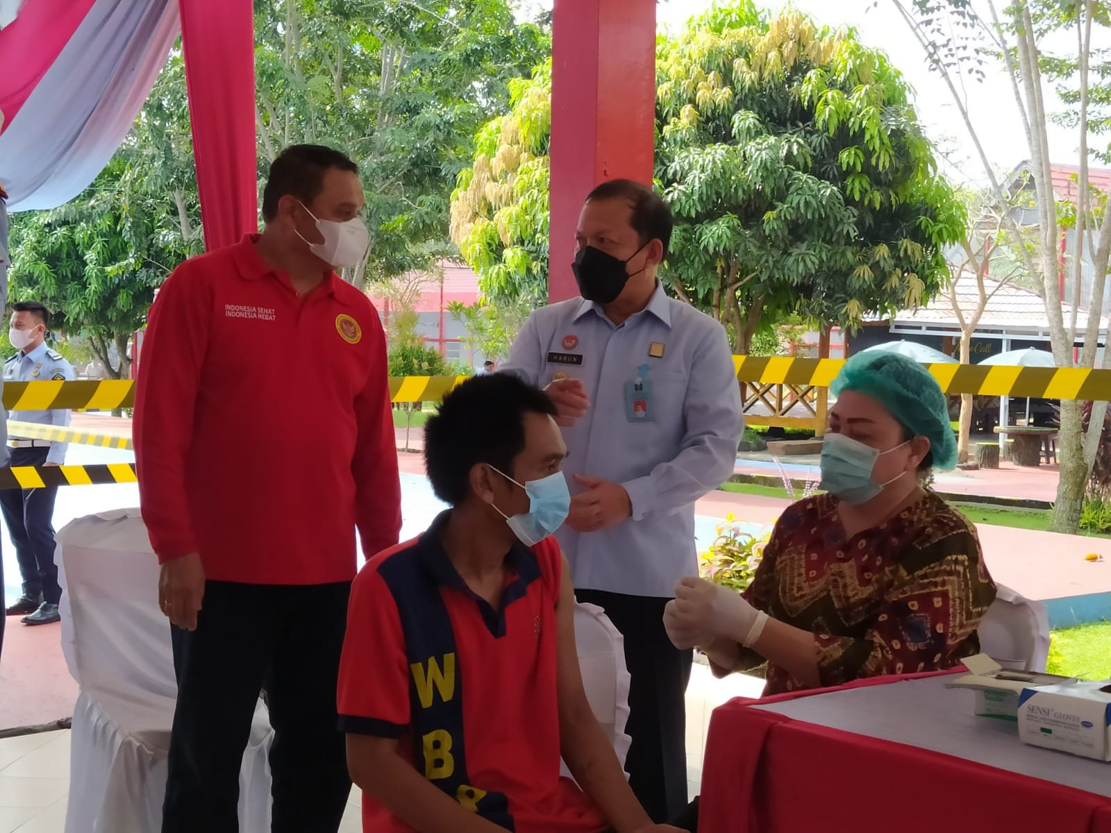 “Kita berharap 16.000 orang narapidana dan tahanan yang ada di lapas dan rutan di wilayah sumatera selatan segera di vaksinasi secara menyeluruh”.ujarnya. Untuk kegiatan vaksinasi di lapas narkotika kelas II Banyuasin hari ini Drs. Harus sulianto menjelaskan ada 523 warga binaan yang akan di vaksinasi.