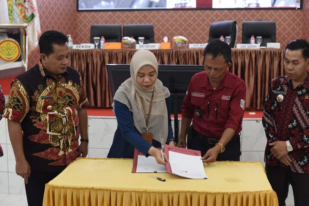 HALOPOS.ID|SEMBAWA- Bupati Banyuasin, H. Askolani, SH.,MH didampingi Sekretaris Daerah (Sekda) Ir. Erwin Ibrahim, ST.,MM.,M.BA melaunching UHC (Universal Health Coverege) sekaligus Penandatanganan Perjanjian Kerjasama Program Pesiar Desa Lalang Sembawa bertempat di Balai SPP Desa Lalang Sembawa, Kecamatan Sembawa, Kamis (8/6).