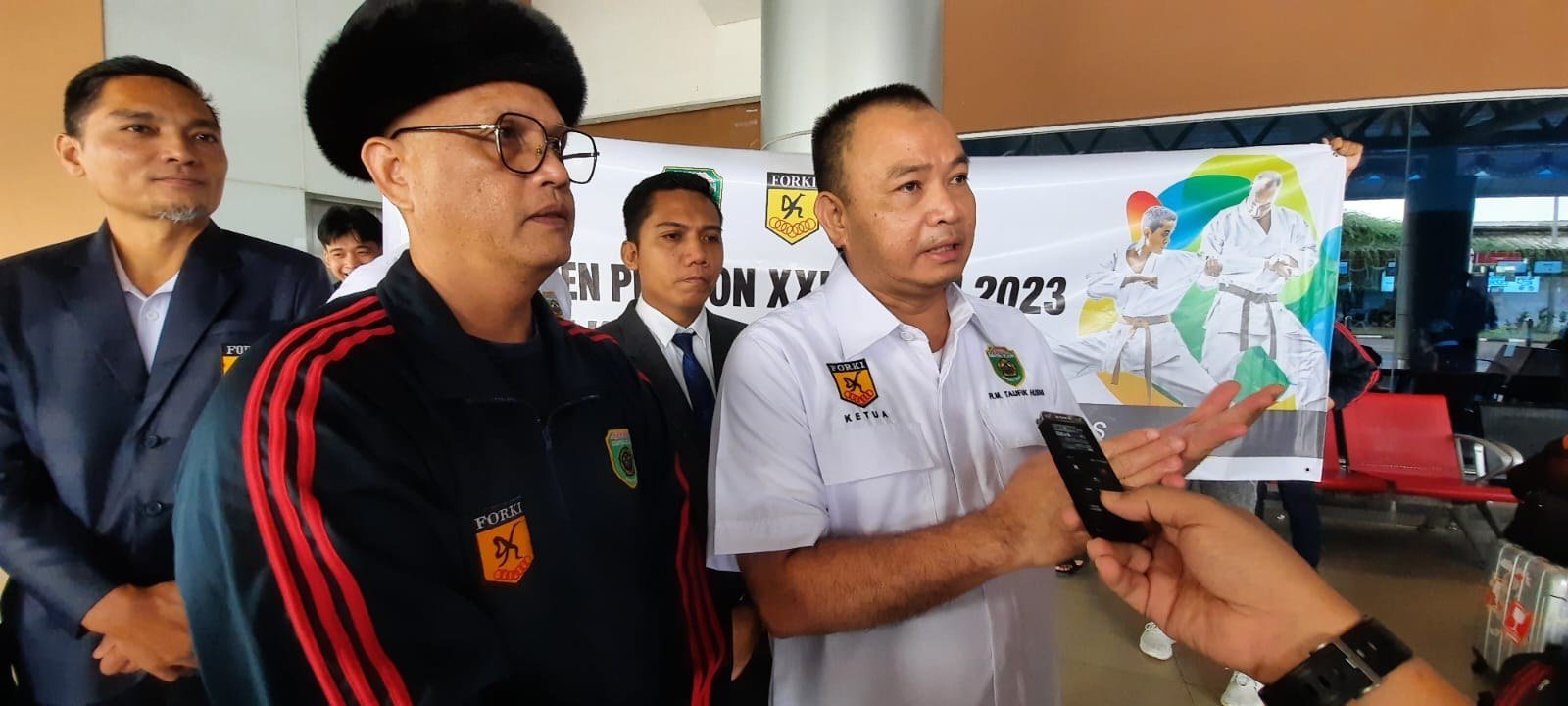 Pelepasan Kontingen Sumsel langsung dipimpin oleh Ketua Umum FORKI Sumsel H. Taufik Husni didampingi Sekretaris Renshi Shihan Husnul Yusuf, Bendahara Fansyuri di Bandara Internasional SMB II Palembang, Senin (21/8/2023).