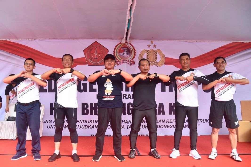 “HUT Bhayangkara ini sebelumnya hanya digelar terbatas karena adanya pandemi covid 19. Tapi tahun ini, HUT Bhayangkara ke 76 di Sumsel tentu merupakan momen yang spesial karena bertepatan dengan akan diadakannya FORNAS ke VI dan event tersebut melibatkan semua kabupaten dan kota di Sumsel. Tentu ini harus dimanfaatkan sehingga semangat HUT Bhayangkara dan FORNAS bersinergi,” kata Herman Deru, disela kegiatan sepeda gembira TNI-POLRI di Komplek Pakri Palembang, Minggu (19/6).