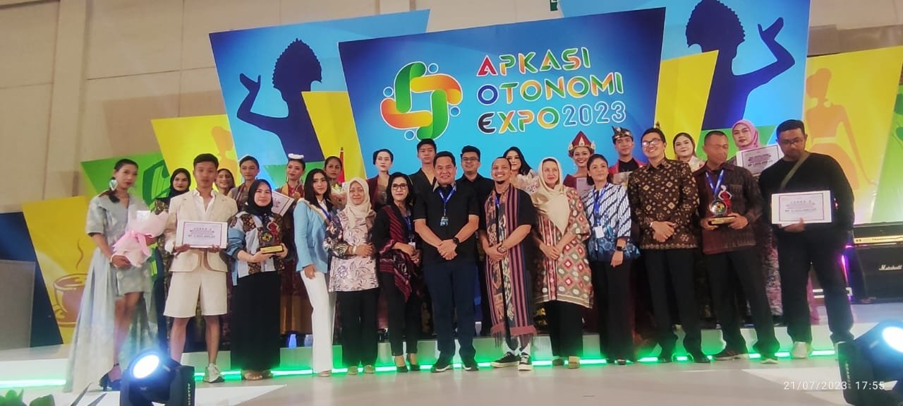 Di ajang Asosiasi Pemerintah Kabupaten Seluruh Indonesia (APKASI) Otonomi Daerah (Otda) Expo di International Convention Center (ICE) BSD, Jumat (21/7/2023) fashion show Gambo Muba berhasil bertengger meraih juara 2.