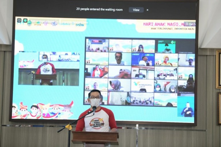 HAN 2021 tingkat Jabar dihadiri para secara virtual oleh bupati/wali kota serta sejumlah organisasi anak. Sementara yang dilakukan di Aula Disdik Jabar Jalan Dr Rajiman, Kota Bandung, menerapkan protokol kesehatan ketat.