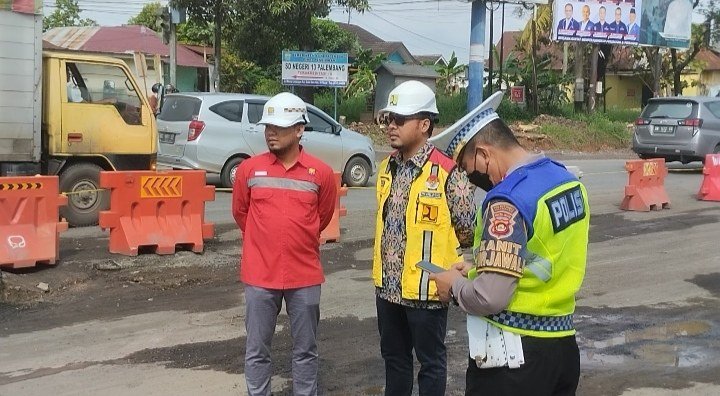 HALOPOS.ID|PALEMBANG – Ruas jalan di kawasan lampu merah simpang empat Macan Lindungan, sedang dilakukan rekayasa pengalihan arus kendaraan lalu lintas.