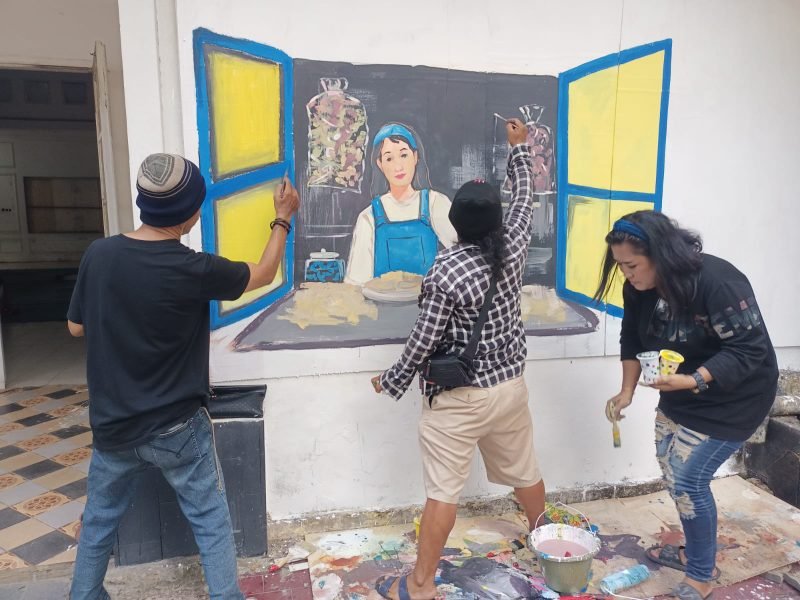 Bahkan, lima pelukis, Rudi, Fajar, Ian Wongkomik, Angga, dan Novi, menggoreskan kemampuan mereka di dinding gedung.