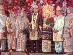 Terlihat, Rizka putri dari pasangan Zulkarnain dan Idra Prihatin tampil elegan dengan mengenakan gaun adat Palembang dengan suaminya Abdul Rahman putra dari pasangan Nandi Agus dan Nyimas Padillah saat berjalan menuju panggung pelaminan.
