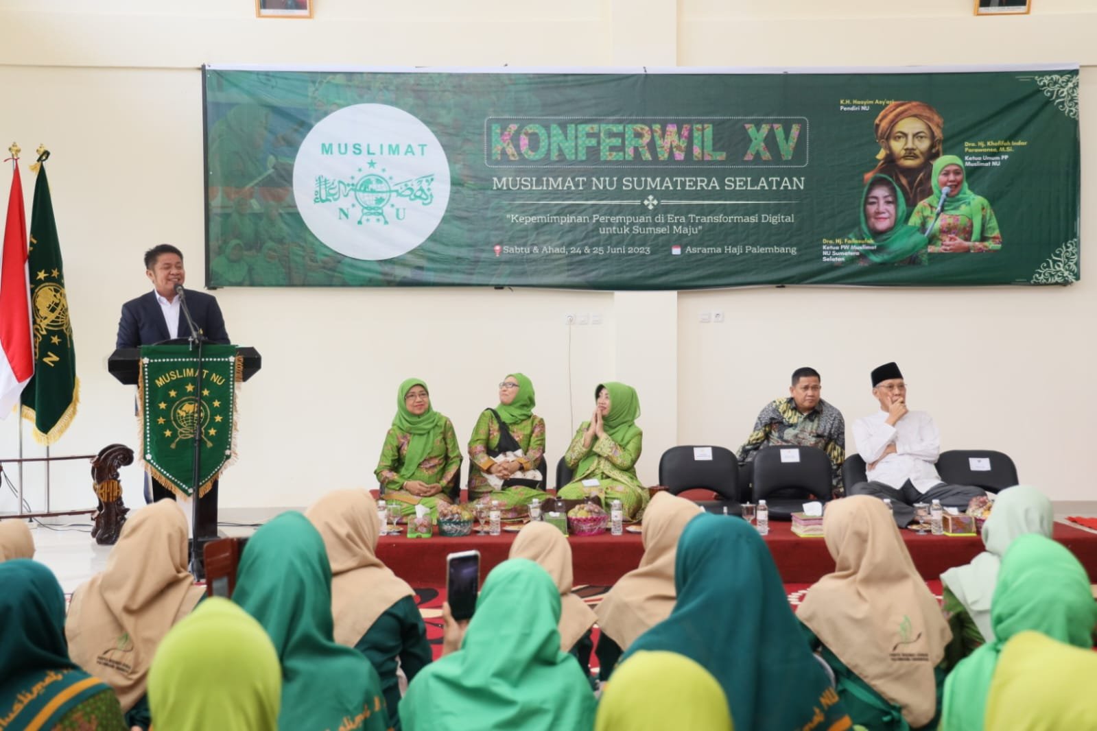 HALOPOS.ID|PALEMBANG –  Gubernur Sumsel H. Herman Deru menghadiri Konferensi Wilayah (Konferwil) XV Muslimat NU Provinsi Sumsel Tahun 2023 yang diselenggarakan di Gedung Teater Asrama Haji Palembang, Sabtu (24/6) siang.