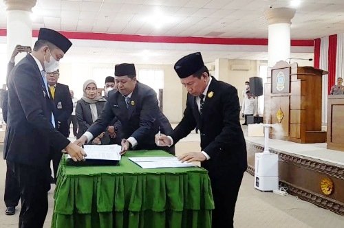 Diakhir rapat adanya Penandatanganan Keputusan oleh Ketua DPRD dan dilanjutkan dengan penyerahan kepada Bupati Ogan Ilir.