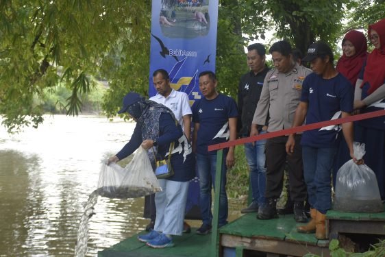 Peringati HUT ke-42, Bukit Asam Tebar 11.000 Benih Ikan di Sungai Enim