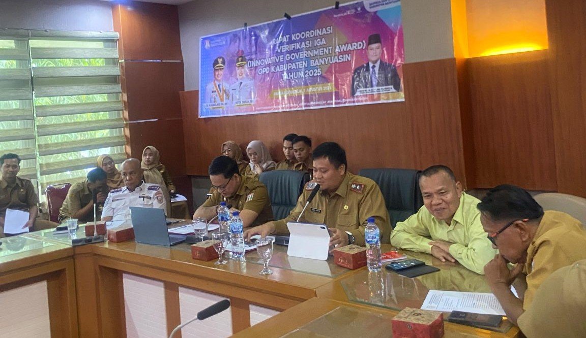 HALOPOS.ID|PANGKALAN BALAI – Sekretaris Daerah Kabupaten Banyuasin sekaligus Plt Kepala Dinas Bappeda & Litbang Ir. Erwin Ibrahim pimpin Rapat Koordinasi Verifikasi IGA (Innovative Government Award) OPD Kabupaten Banyuasin Tahun 2025 bertepat di Ruang Rapat Sekda. Senin (11/08).