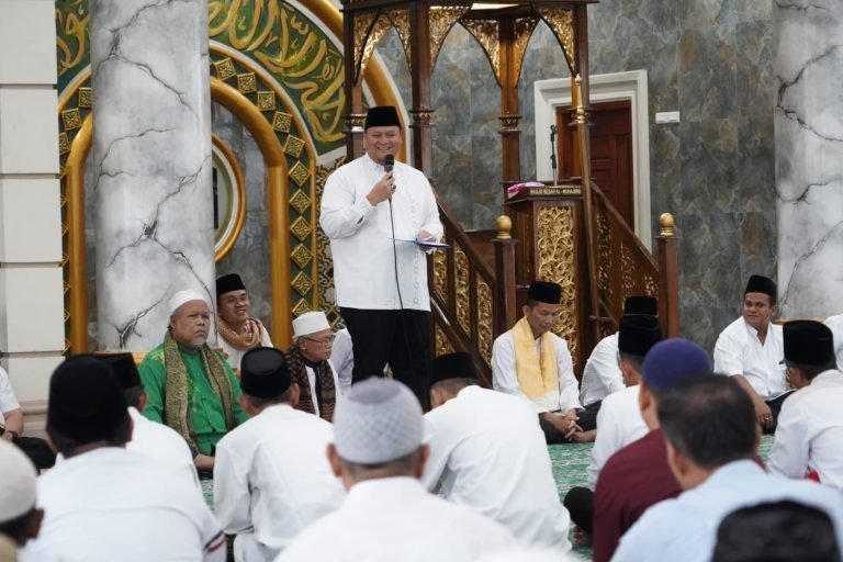 HALOPOS.ID|BETUNG — Memanfaatkan Momentum bulan suci Ramadhan mewakili Penjabat (Pj) Bupati Banyuasin H. Hani Syopiar Rustam, SH Sekretaris daerah Banyuasin Ir. Erwin Ibrahim, ST., MM., MBA IPU ASEAN ENG melakukan Safari Ramadhan di Masjid Al-Muhajirin Kecamatan Betung, Rabu (20/03).