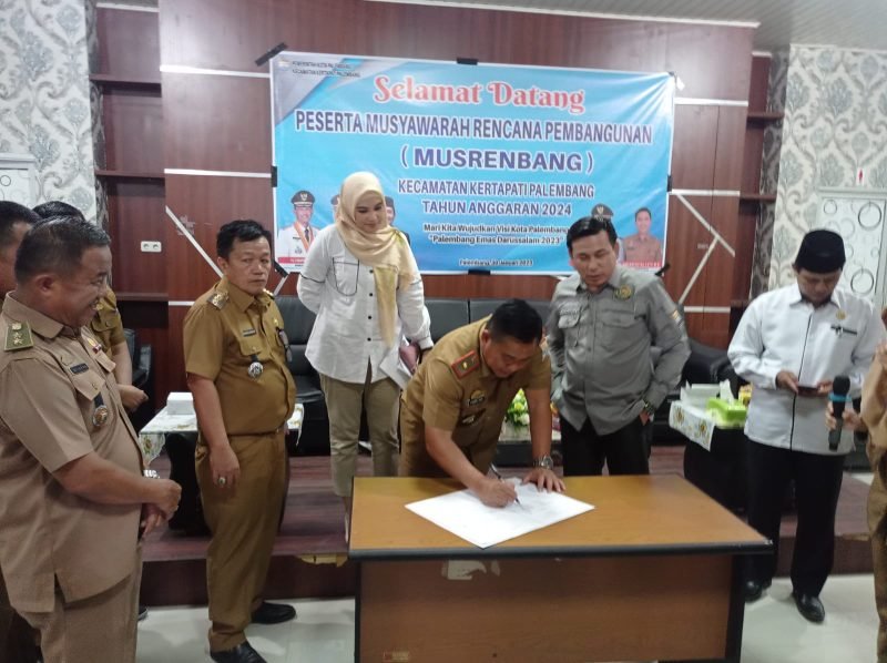 HALOPOS.ID|PALEMBANG – Musyawarah Rencana Pembangunan (Musrenbang) Tingkat Kecamatan, Tahun Anggaran 2024 yang di gelar di Aula Kantor Camat Kertapati Palembang, Senin (30/1/2023) mengusung tema “Mari kita wujudkan visi Kota Palembang, Palembang Emas Darusalam 2023”