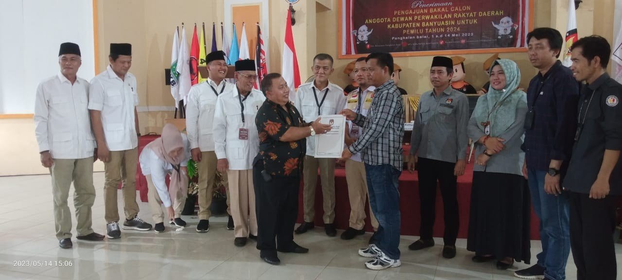 Arak- arakan di pimpin langsung oleh Slamet Sumosentono selaku ketua dpc partai grindra kabupaten banyuasin ,sekretaris parta grindra ,Noor ismatuddin ,S,IP dan beberapa para petinggi partai grindra ,langsung disambut hangat oleh ketua kpu banyuasin Nurul mubarok ,anggota KPU Banyuasin .