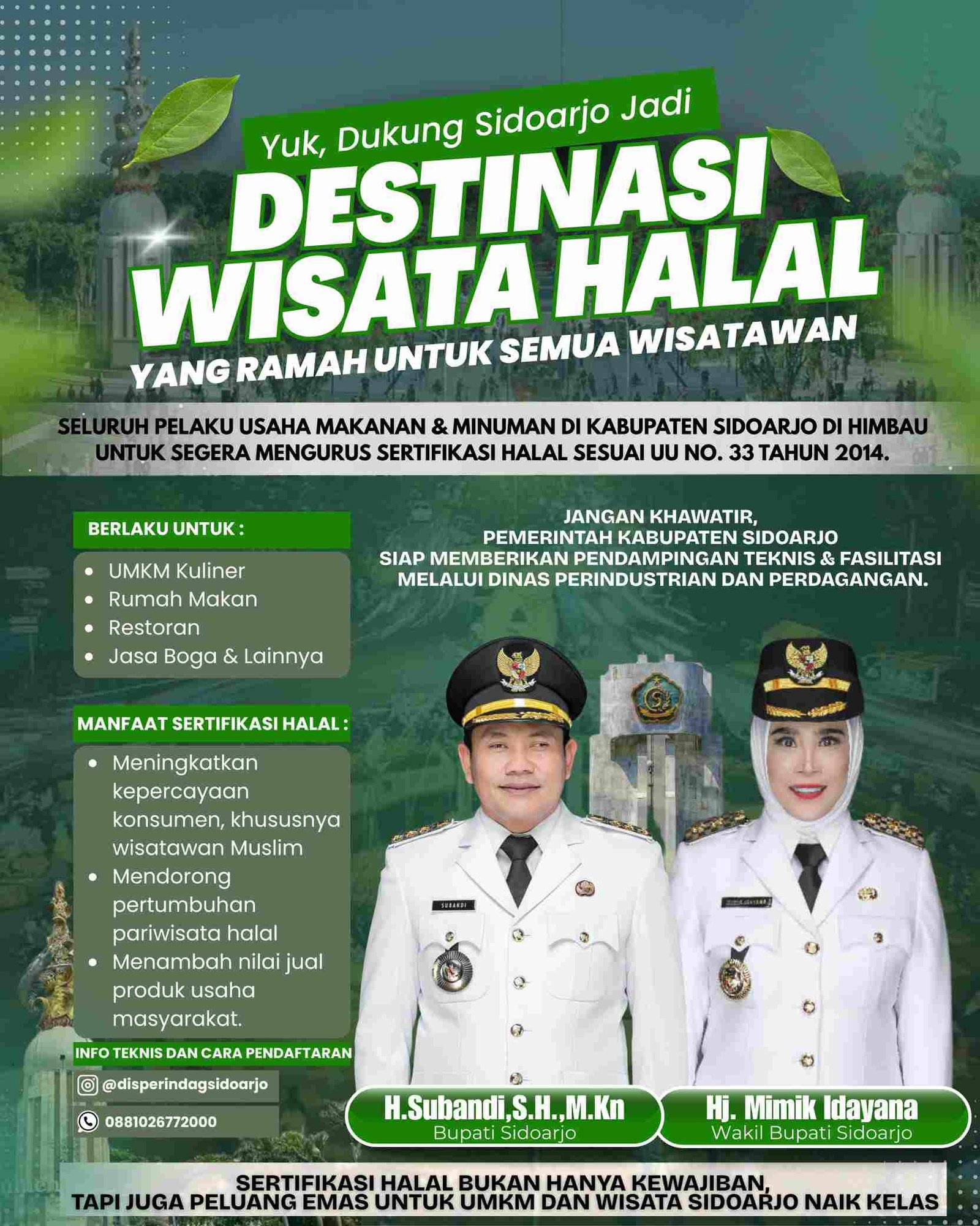 Melalui surat edaran ini, Bupati Sidoarjo H. Subandi, S.H., M.Kn , secara tegas mengimbau agar semua pelaku usaha kuliner, baik skala mikro hingga besar, segera mengurus dan memiliki Sertifikat Halal resmi dari Badan Penyelenggara Jaminan Produk Halal (BPJPH). Imbauan tersebut tidak hanya bersifat anjuran moral, namun juga sebagai bentuk implementasi konkret Undang-Undang Nomor 33 Tahun 2014 tentang Jaminan Produk Halal.