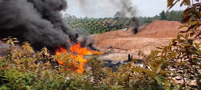 MUBA – Kebakaran sumur minyak ilegal yang ada di Desa Keban 1, Kecamatan Sanga Desa, belum padam sudah muncul kebakaran baru.