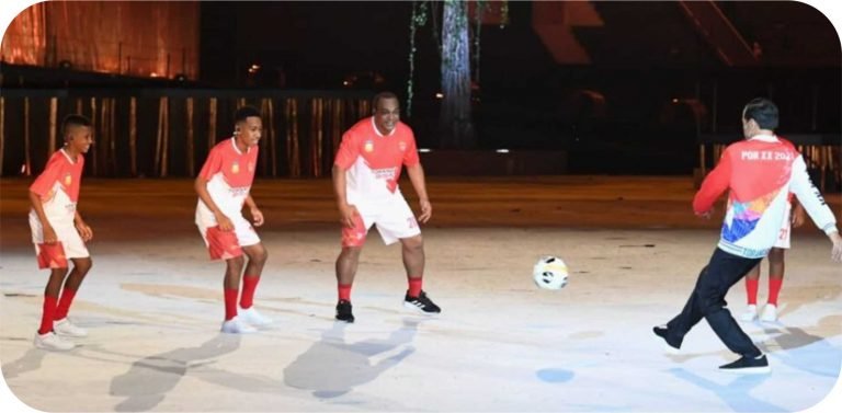 PAPUA – Pembukaan perhelatan Pekan Olahraga Nasional [PON] XX papua tahun 2021, diwarnai aksi seorang anak kecil asal Papua mengajak Presiden Joko Widodo turun ke lapangan untuk bermain dengan legenda pesepak bola Indonesia, Jack Komboy beserta tiga anak muda.